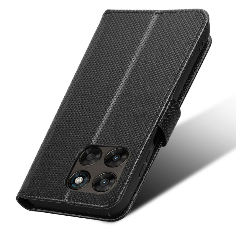 Lägg till en elegant touch till din Motorola Moto G77 5G / G67 5G med detta svarta diamanttexturerade plånboksfodral.