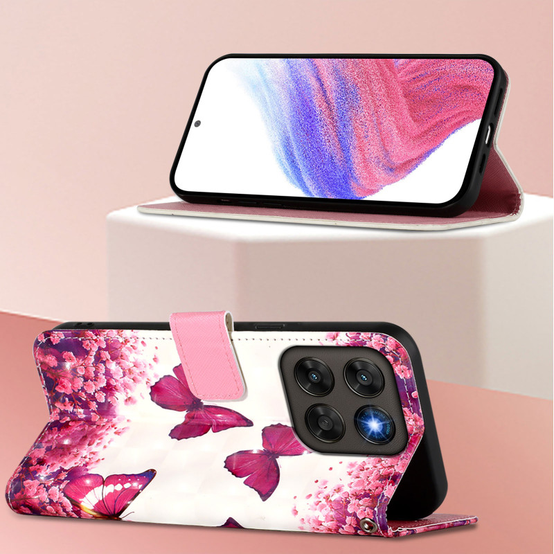 Lägg till en feminin touch till din Motorola Moto G77 5G / G67 5G med detta eleganta rosa fjärilsfodral.