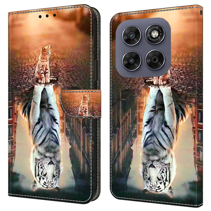 Gör ett stilfullt uttalande med detta originella katt- och tigermotiv Motorola Moto G77 5G / G67 5G fodral.