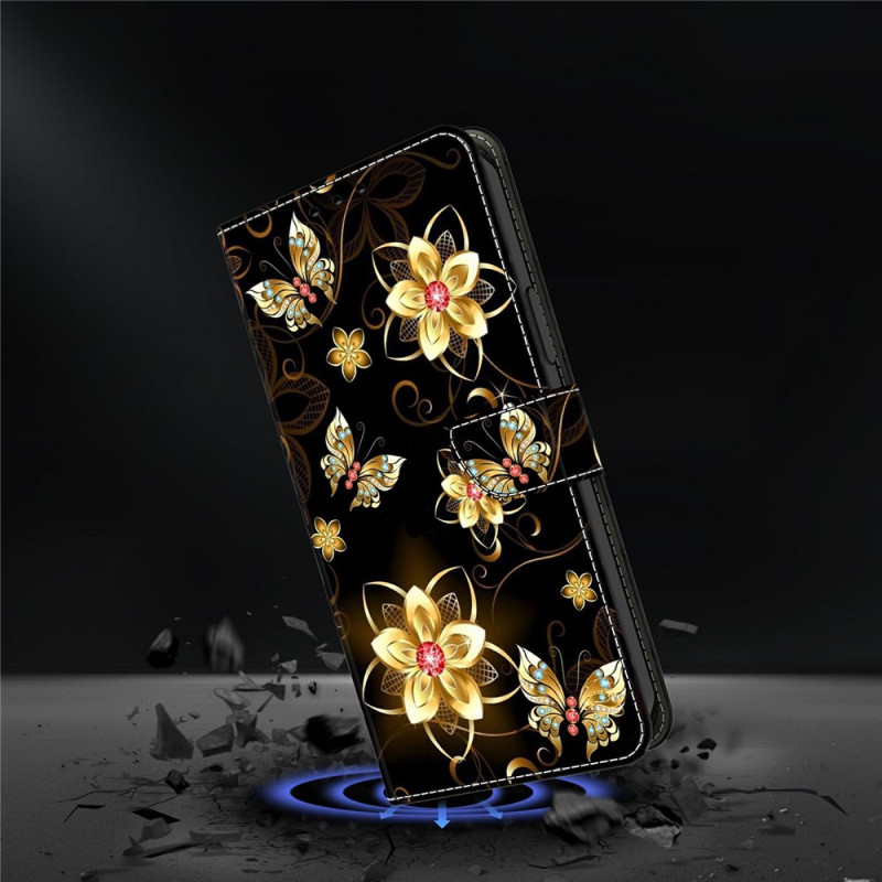 Förbättra din Motorola Moto G77 5G / G67 5G med detta vackert designade Golden Flowers and Butterflies fodral.