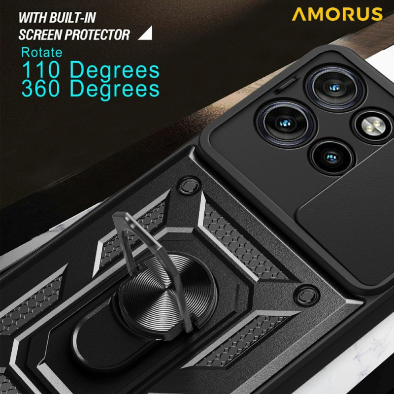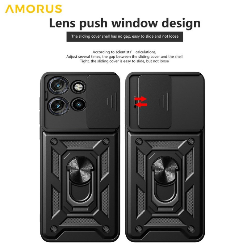 Den är praktisk och har ett skjutbart linsskydd och ett vridbart stöd.