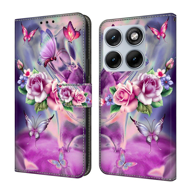 Försköna din Motorola Edge 70 Fusion 5G med detta plånboksfodral med fjärilar och blommor.