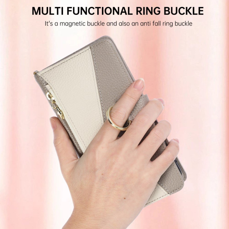 Den tvåfärgade stilen med sömmar ger elegans och stil åt mobilen.