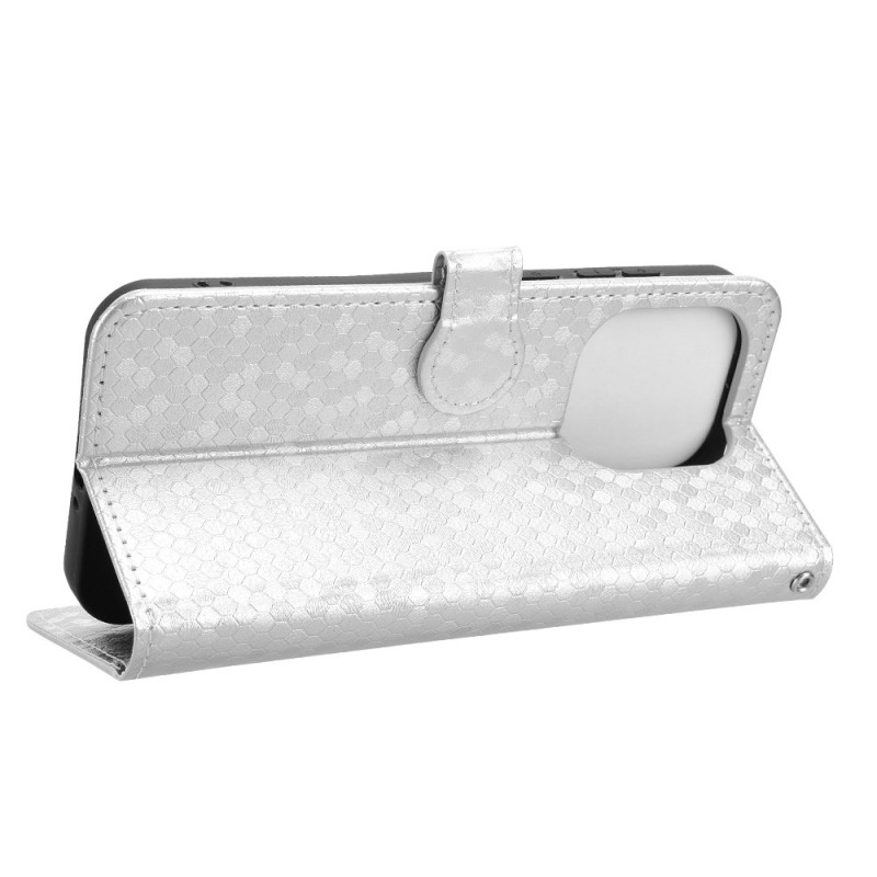 Snyggt plånboksfodral för OnePlus 15 5G med texturerat prickmönster. Med kortfack, justerbart flervinkelstativ och praktisk handledsrem. Skyddar din telefon samtidigt som det ger vardaglig funktionalitet och stil.