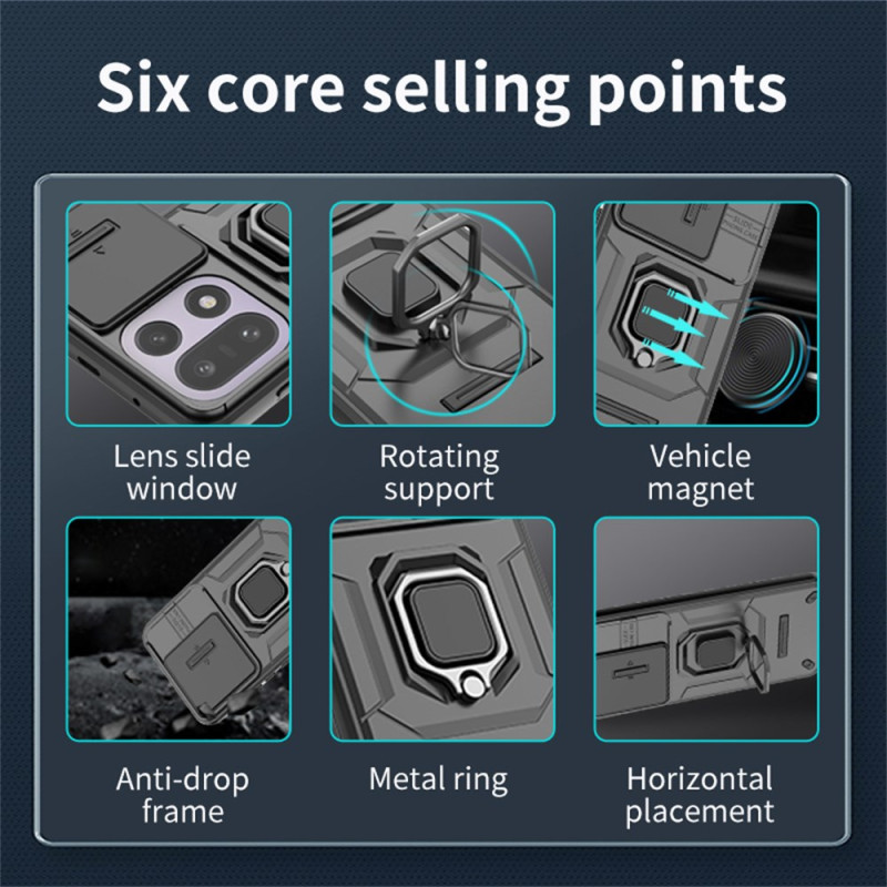 Skydda din OnePlus 15 5G med detta robusta fodral med ett integrerat roterande kickstand och skjutbart linsskydd. Stötskyddad design med upphöjda kanter för optimalt skydd av skärm och kamera. Enkel åtkomst till alla funktioner.