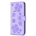 Upptäck vårt plånboksfodral i läder till Oppo A38 4G / A18 4G, med ett tryckt klövermotiv.