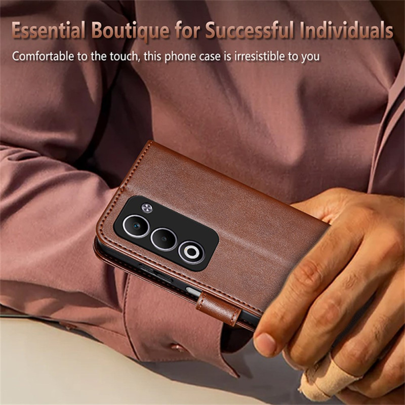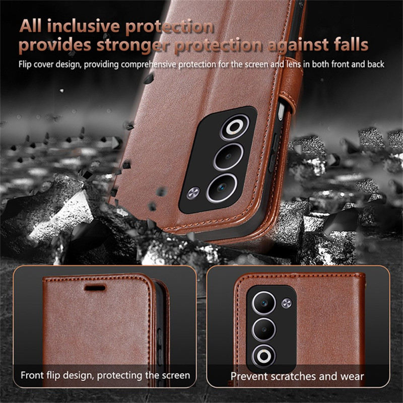 Skydda din Oppo A5 5G med stil med detta multifunktionella plånboksfodral i premium PU-läder. Med flera kortplatser, en kontantficka och ett integrerat stativ kombinerar det elegans och funktionalitet för daglig användning.