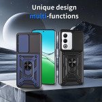 Skydda din Oppo A5 5G med detta innovativa fodral som har ett integrerat roterande stativ och ett skjutbart kameraskydd. Det är tillverkat av slitstarka material och ger ett militärt skydd mot skal samtidigt som det gör det enkelt att använda handsfree.