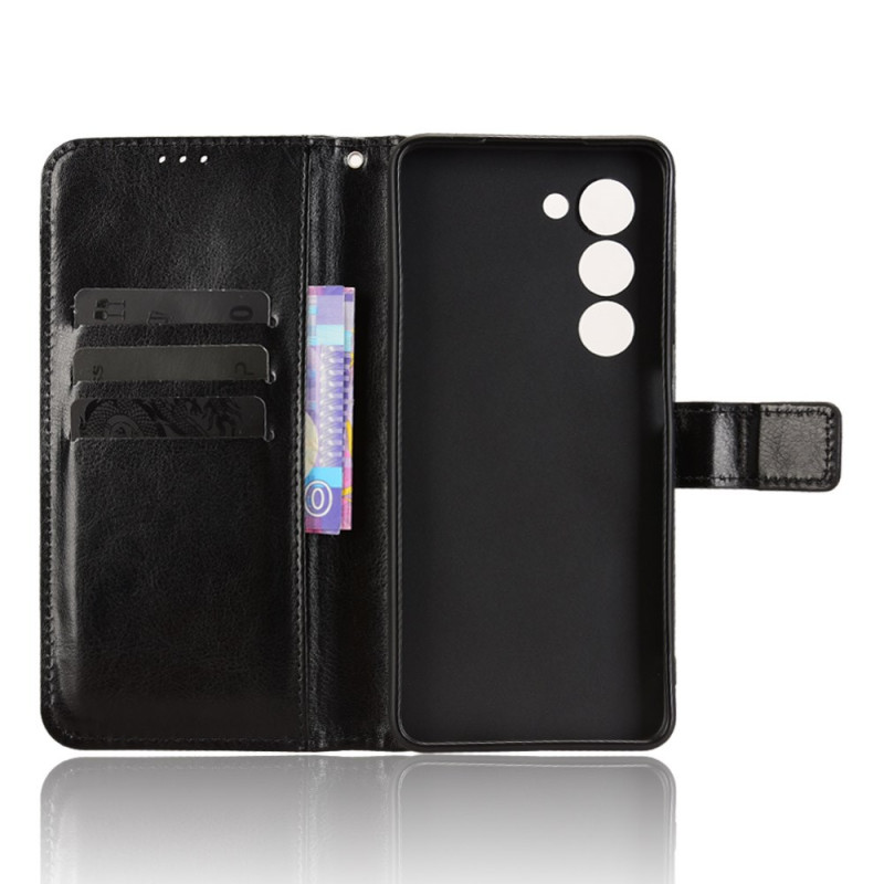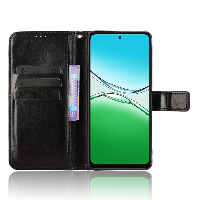 Snyggt plånboksfodral i premium PU-läder med crazy horse-textur till din Oppo A5 5G/4G. Med 3 kortfack, ett kontantfack och en praktisk handrem. Säker magnetisk stängning och handsfree-funktion.