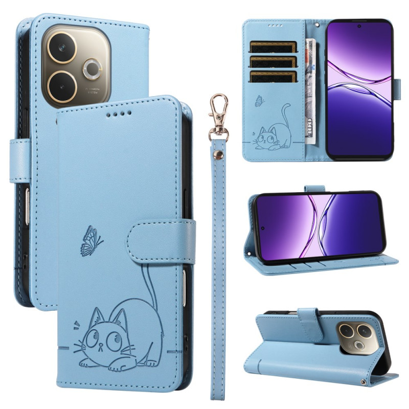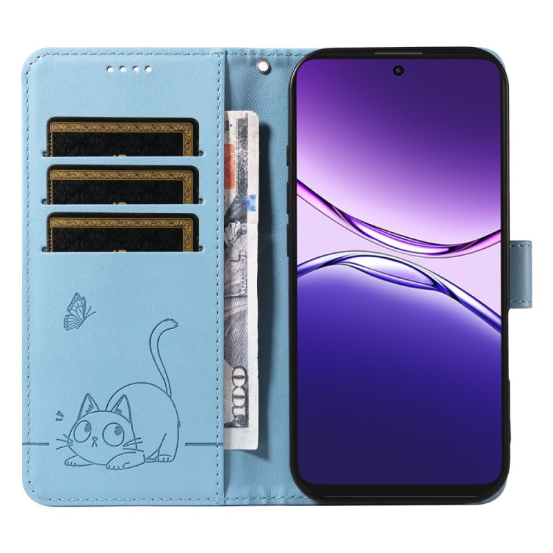 Skydda din Oppo A5 Pro 5G / 4G med stil med detta snygga plånboksfodral med ett lyckligt kattmotiv. Multifunktionell design med 3 kortplatser, biljettficka och praktisk handrem.