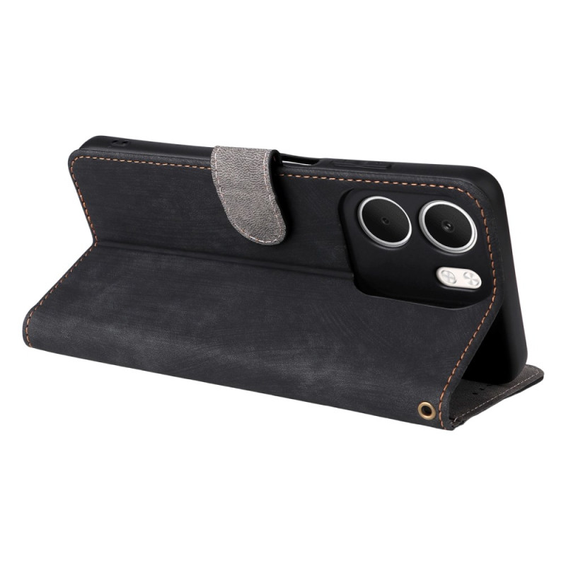 Snyggt plånboksfodral för Oppo A5X 4G med integrerat RFID-skydd. Med 3 kortfack, 1 anteckningsficka och ståfunktion. Säker magnetisk stängning och praktisk handrem ingår. Fullständigt stötskydd.