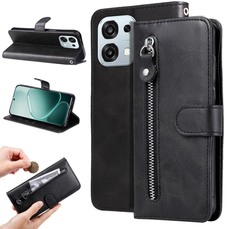 Den är praktisk och har korthållare, en ficka med dragkedja och ett stativ.