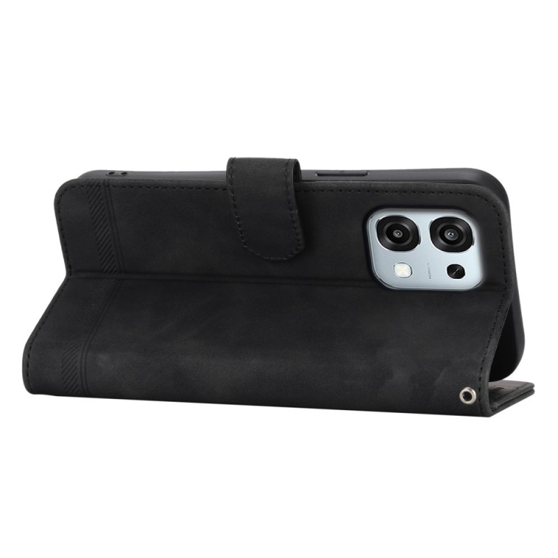 Elegant plånboksfodral med raffinerat linjetryck. Har ett flexibelt TPU-innerskal, kort- och kontantfack, justerbar stativfunktion och säker magnetisk stängning. En praktisk handrem ingår.