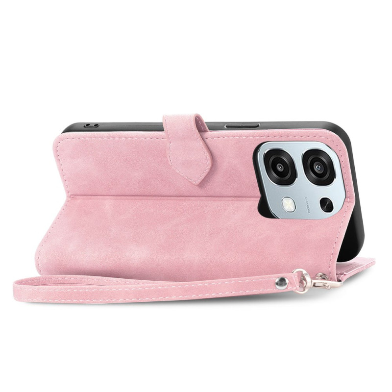 Elegant plånbok i PU-läder med graverat blommotiv, flera fickor för kort och kontanter, säker magnetstängning och integrerat visningsstativ. Komplett skydd mot repor och skal med praktisk handrem.