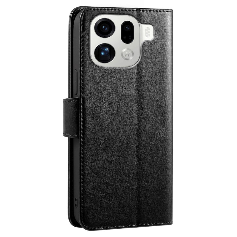 Multifunktionellt plånboksfodral för Oppo Find X9 Pro 5G i premium PU-läder. Har integrerade korthållare, ett anteckningsfack och en praktisk ståfunktion. Säker magnetisk stängning för att skydda din telefon och andra viktiga saker.