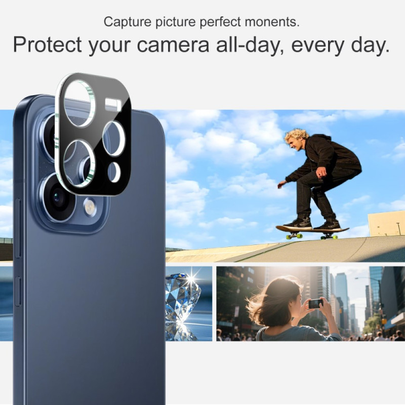 Skydda linsen på din Oppo Reno 15 5G med denna högupplösta härdade glasfilm och akrylskydd. Bubbelfri installation tack vare AB-lim. Hydrofobisk och oleofobisk beläggning för skarpa, tydliga foton.