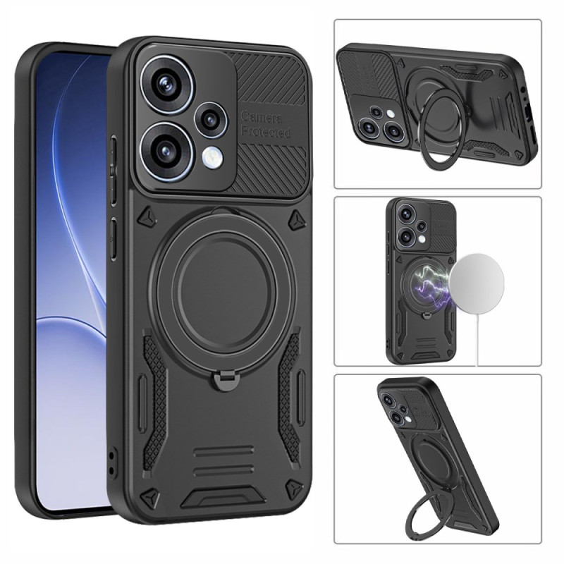 Protégez votre Oppo Reno 15 5G avec cette coque magnétique antichoc dotée d'une béquille rotative à 360°. Profitez d'une protection renforcée aux chocs et d'une compatibilité magnétique pour vos accessoires. Design ergonomique avec découpes précises.