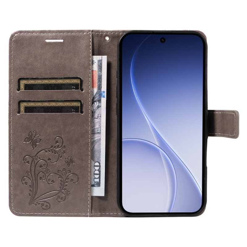 Elegant plånbok i premium PU-läder med tryckt fjärilsmotiv. Med kortfack, sedelfack och handsfree-funktion. Praktisk handrem för säker och enkel bärning.