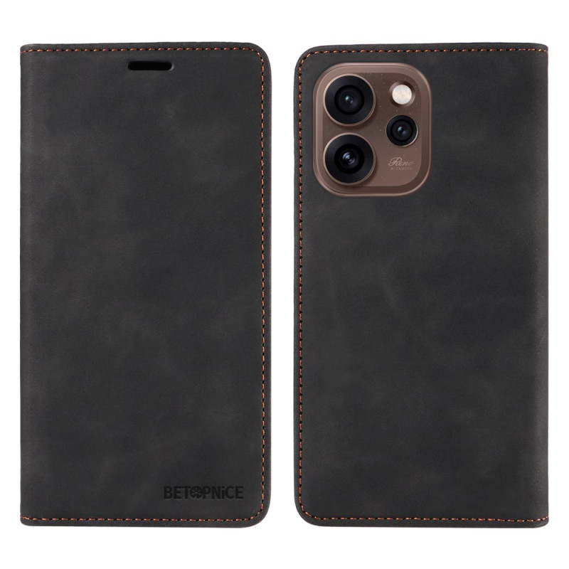 Plånboksfodral i läder för Oppo Reno 15 Pro 5G med säker magnetstängning och RFID-blockeringsteknik. Med 2 kortplatser, 1 kontantficka och ett justerbart stativ för optimal handsfree-visning.