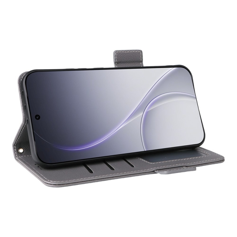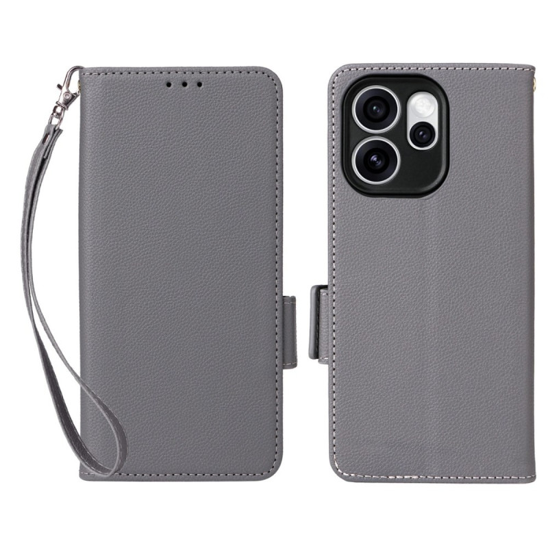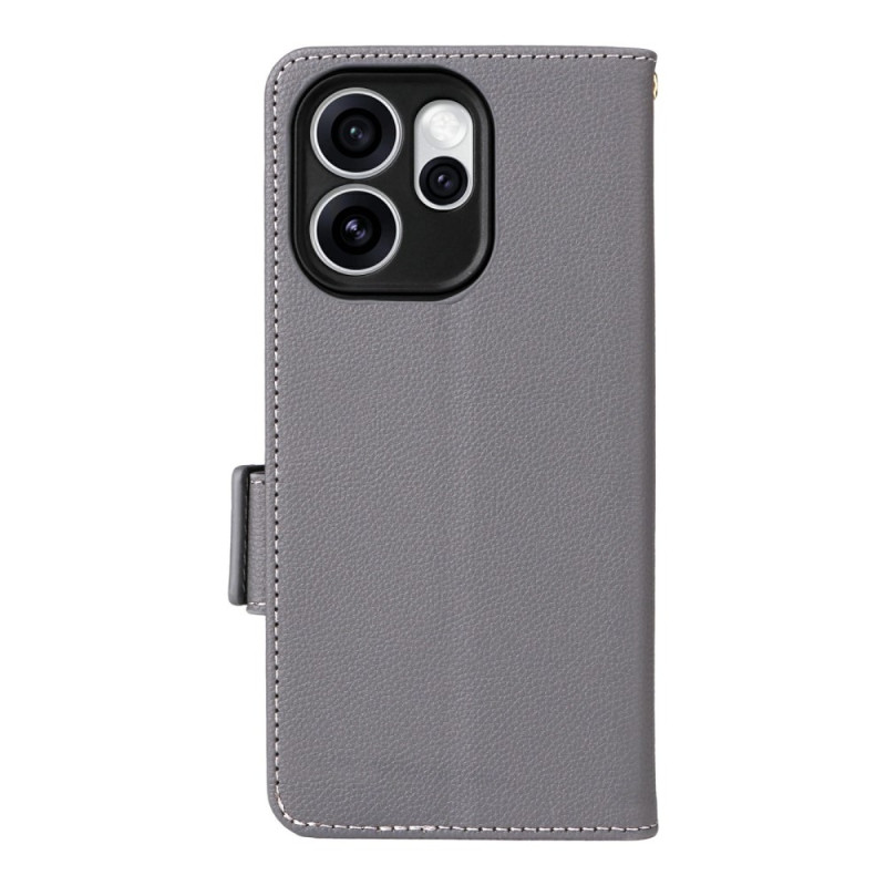 Snyggt plånboksfodral med lychee-textur för Oppo Reno 15 Pro 5G. Med fack för kort och pengar, integrerat handsfree-stöd, säker magnetstängning och praktisk handrem. Fullständigt skydd mot vardagens stötar och slag.