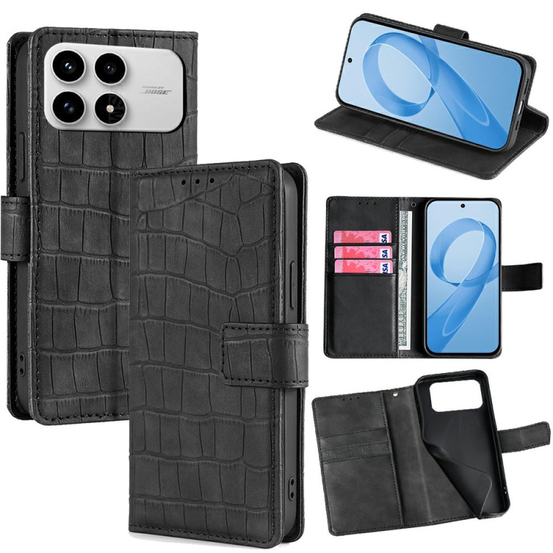 Skydda din smartphone med stil med detta fodral i PU-läder med krokodiltextur. Med 3 kortplatser, en kontantficka och ett vikbart stativ kombinerar det stil och funktionalitet. Den säkra magnetiska stängningen och de upphöjda kanterna skyddar din telefon varje dag.