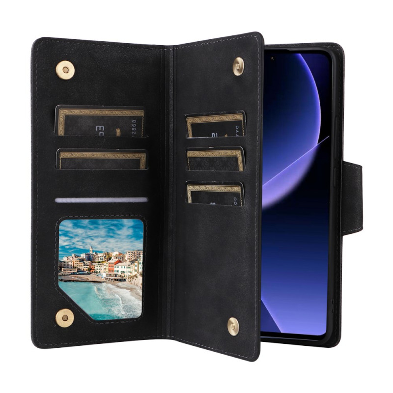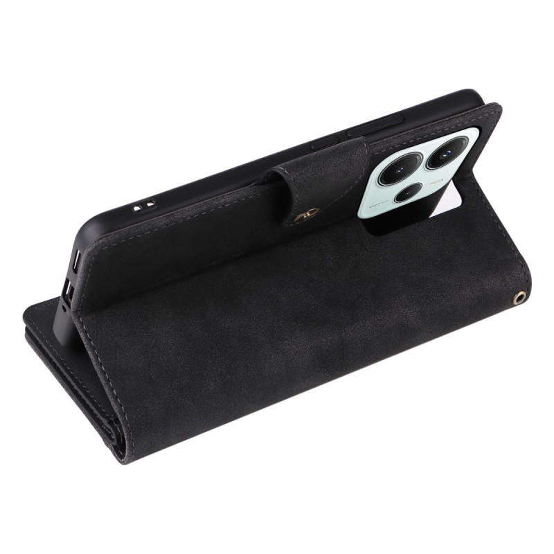 Upptäck vårt plånboksfodral i läder med dragkedja för din Xiaomi Redmi Note 14 5G / Poco M7 Pro 5G. Detta fodral kombinerar stil och funktionalitet och erbjuder dubbelt skydd, praktiskt förvaringsutrymme och ett vikbart stativ.