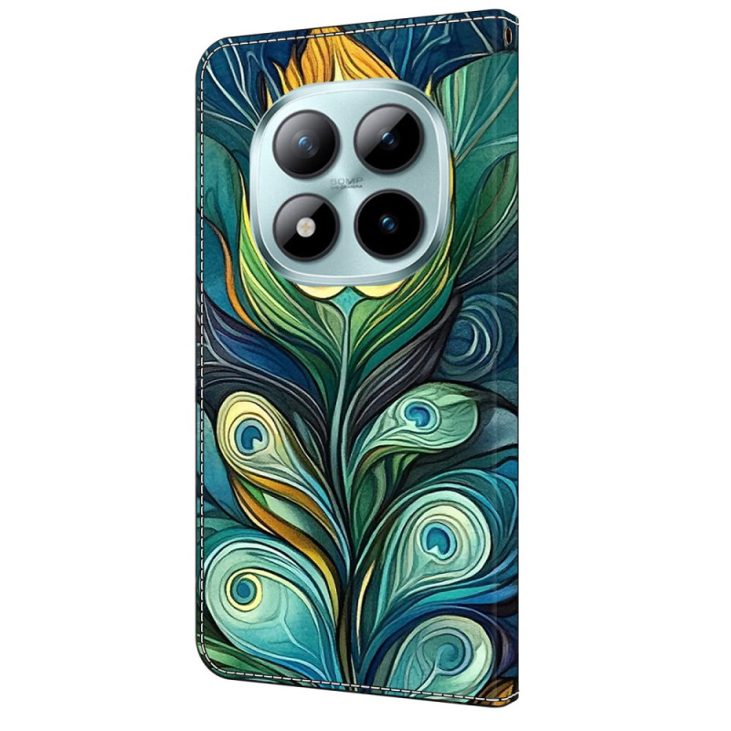 Skydda din Xiaomi Redmi Note 15 5G / 4G / Poco M8 5G med stil med detta eleganta klafffodral med ett grönt fjädermönster. Med ett praktiskt vikbart stativ, kortfack och en säker magnetisk stängning är det den perfekta kombinationen av funktionalitet och stil.