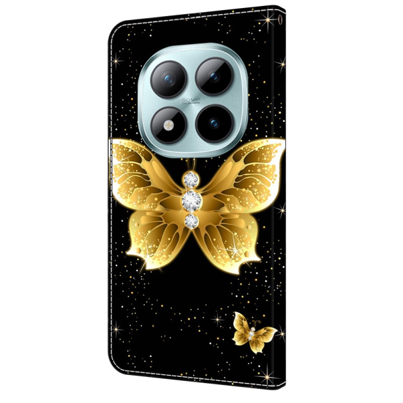 Skydda din smartphone med stil med detta fodral med klaff och guldfärgade fjärilar. Med en praktisk utfällbar hållare, kortfack och en säker magnetisk stängning kombinerar det stil och funktionalitet för daglig användning.