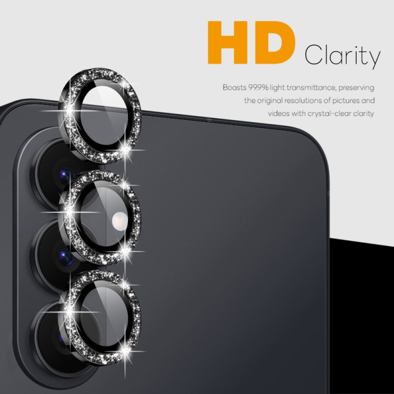 Protégez l'objectif photo de votre Samsung Galaxy S26 avec élégance. Ce set comprend un film en verre trempé et un protecteur métallique pailleté pour une couverture complète. Design brillant et glamour qui sublime votre smartphone.
