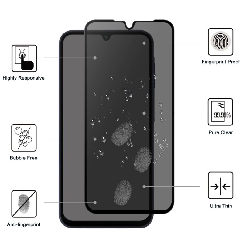 Skydda din integritet med denna antispionfilm tillverkad av härdat glas. Med 9H hårdhet och 2,5D rundade kanter ger den optimalt skydd mot nyfikna ögon och repor, samtidigt som den garanterar enkel installation.