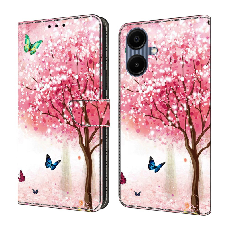 Skydda din Samsung Galaxy A07 5G / 4G med stil med detta plånboksfodral med klaff med motiv av körsbärsträd och fjärilar. Raffinerad design med integrerat vikbart stativ, 2 kortfack och säker magnetstängning för optimalt skydd.