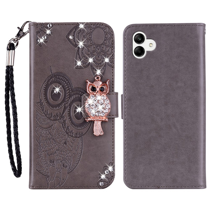 Skydda din Samsung Galaxy A07 5G / 4G med stil med detta plånboksfodral i premium PU-läder. Det är utsmyckat med ett ugglemotiv och gnistrande strass och kombinerar stil och funktionalitet med sina kortplatser och integrerade handsfree-hållare.