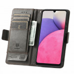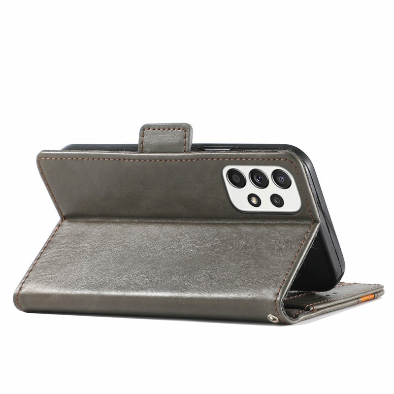 Ett tvåfärgat konstläderfodral för Samsung Galaxy A13 4G, med skydd, kortfack och ett dubbelt spänne.