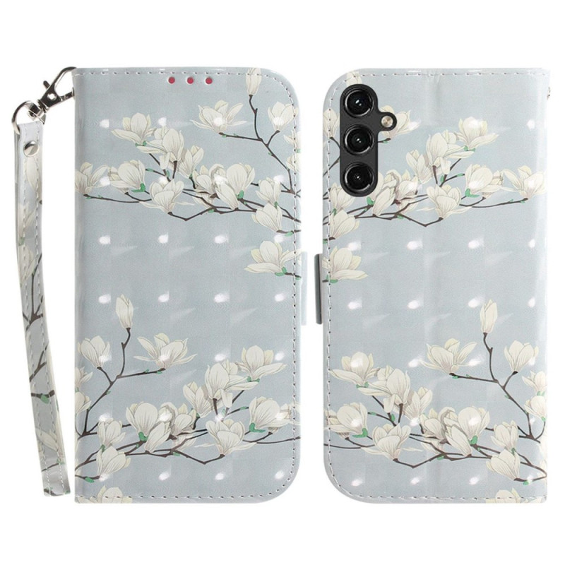 Din Samsung Galaxy A14 5G / A14 är perfekt skyddad med detta fodral i konstläder med blommiga grenar och fäst rem.