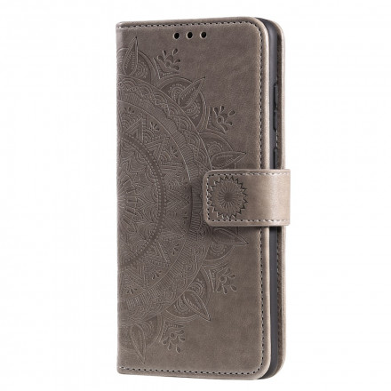Une magnifique housse pour Samsung Galaxy A22 4G au mandala design d'un Soleil qui fait aussi portefuille et support.