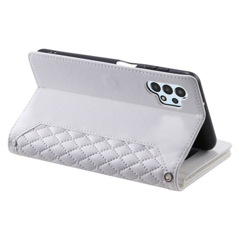 Detta plånboksfodral i läder till Samsung Galaxy A32 5G / M32 5G ger ett komplett skydd mot stötar. Med sin eleganta diamantstruktur har det flera fack för kort och pengar samt en ficka med dragkedja.