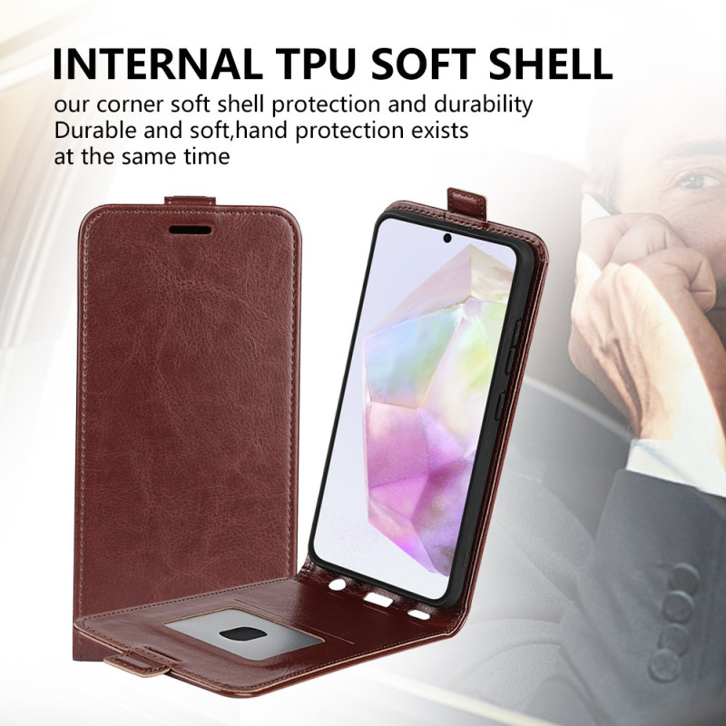 Upptäck vårt snygga vertikala fodral för Samsung Galaxy A56 5G / A36 5G. Tillverkat av högkvalitativt PU-läder och TPU ger det ett robust skydd och en sofistikerad look.