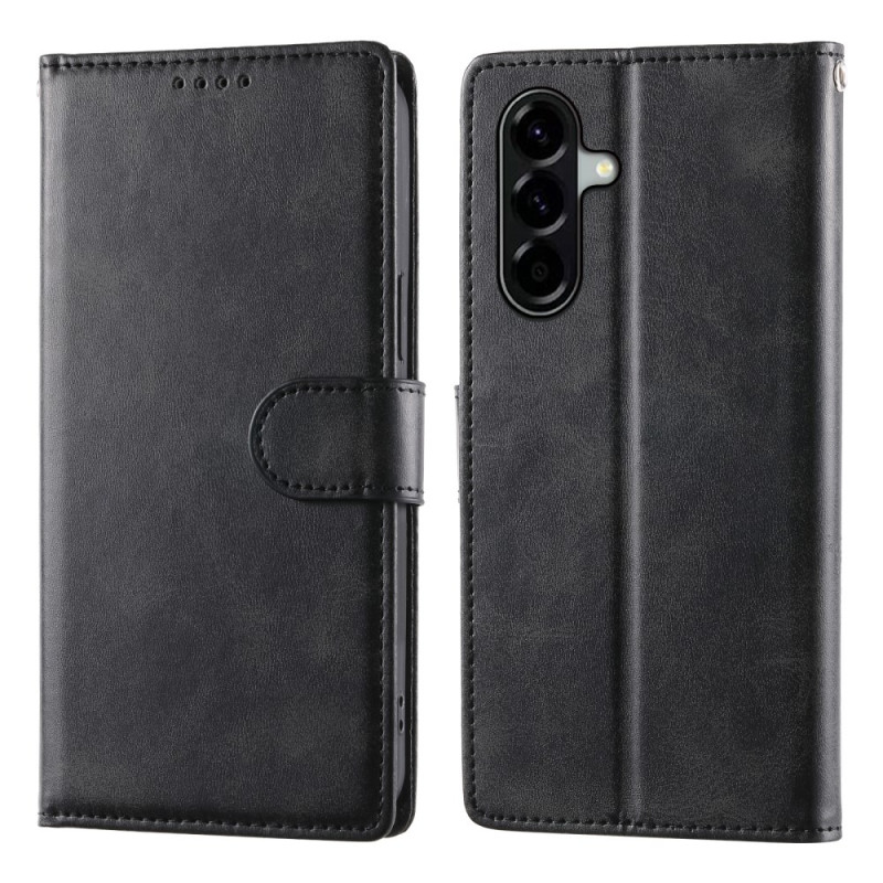 Étui portefeuille élégant en cuir PU texture veau pour Samsung Galaxy A37 5G. Design sophistiqué avec support ajustable, fermeture magnétique et dragonne pratique. Protégez votre téléphone avec style tout en gardant vos cartes à portée de main.