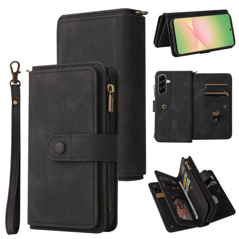 Skydda din Samsung Galaxy A57 5G med stil med detta multifunktionella plånboksfodral. Med 15 kortplatser, en säker ficka med dragkedja och en avtagbar handledsrem kombinerar det elegans med praktisk användning i vardagen.