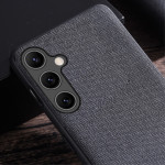 Detta fodral i hårdplast och tyg ger utmärkt skydd för baksidan och kanterna på din Samsung Galaxy S23 FE.
