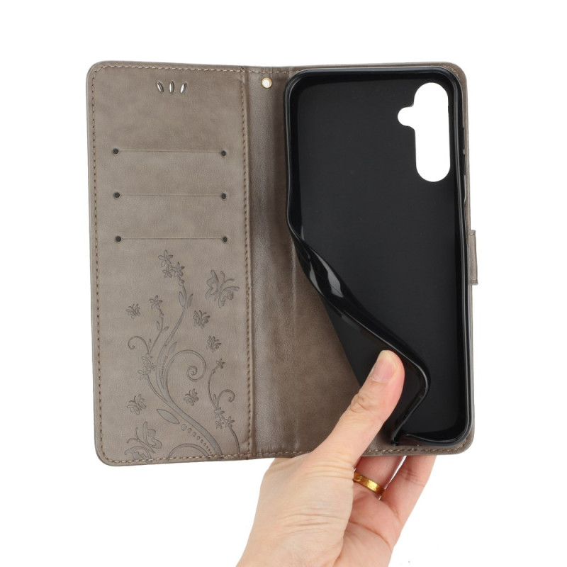 Skydda din Samsung Galaxy S26 5G med stil med detta plånboksfodral i premiumläder. Dess sofistikerade design har ett vackert graverat fjärils- och blommotiv som kombinerar raffinerad stil med robust skydd för din telefon varje dag.
