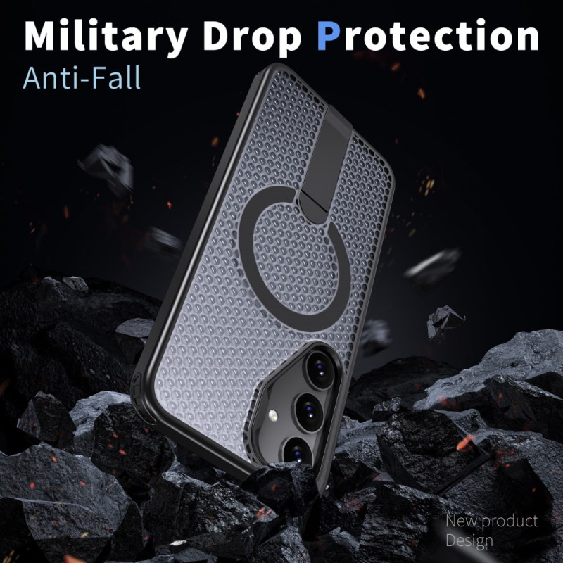 Protégez votre Samsung Galaxy S26 Plus avec style grâce à cette coque magnétique dotée d'une texture grille unique et d'une béquille intégrée. Sa conception 3D ventilée améliore la dissipation de chaleur de 50% pour des performances optimales.