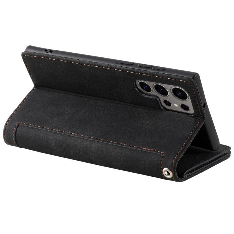 Multifunktionell plånbok i PU-läder med 9 kortplatser, ficka med dragkedja och handrem. Säker magnetisk stängning och handsfree-funktion för bekväm videovisning. Allround-skydd mot vardagens stötar och slag.