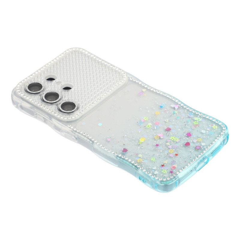 Protégez votre Samsung Galaxy S26 Ultra avec élégance grâce à cette coque scintillante en TPU. Dotée d'une finition époxy brillante incrustée de paillettes et d'un cadre ondulé orné de strass étincelants, elle allie protection fiable et style glamour pour un look unique et raffiné.