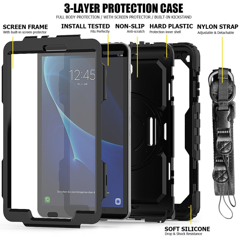 Skydda din surfplatta med det här robusta fodralet som har ett 360° roterande stöd, en justerbar handrem och en avtagbar axelrem.