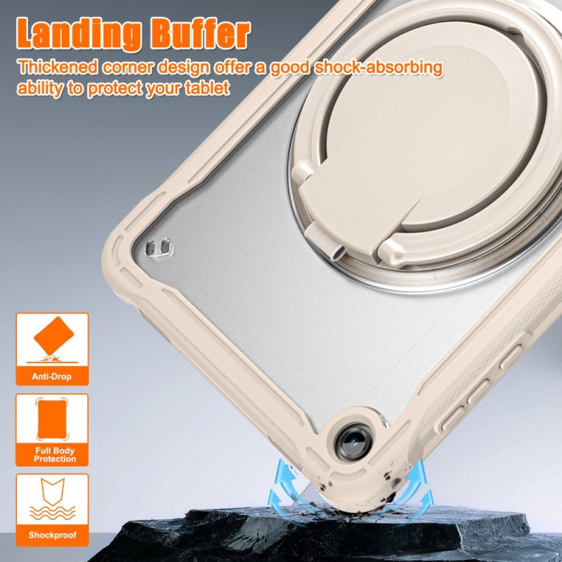 Det 360° roterande handtaget gör att du kan transportera din surfplatta med full frihet, medan det dubbla skyddslagret effektivt absorberar stötar.