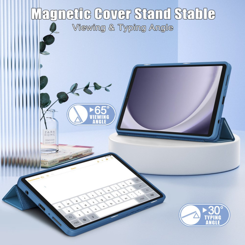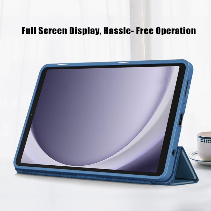 Detta eleganta smarta fodral för Samsung Galaxy Tab A9 ger komplett skydd och enkel åtkomst till alla viktiga portar och knappar.