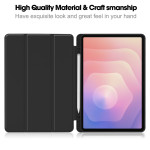 Upptäck vårt tredelade fodral för Samsung Galaxy Tab S11. Tillverkat av högkvalitativt PU-läder med en bikakedesign för bättre värmeavledning. Det ger ett komplett skydd, justerbart stöd och en praktisk plats för pekpennan. Dra nytta av funktionen för automatiskt larm/väckarklocka för att spara på batteriet.