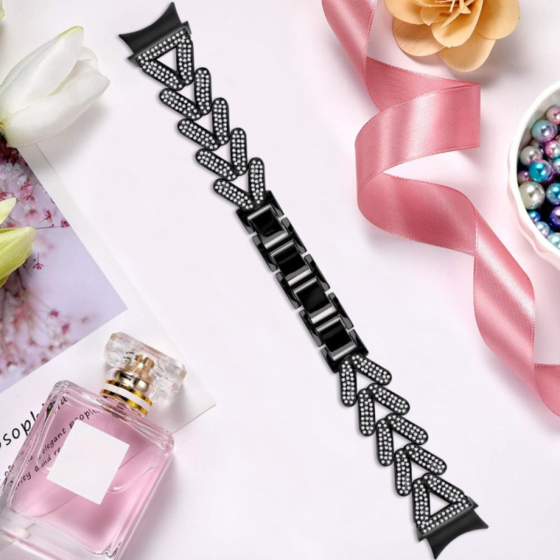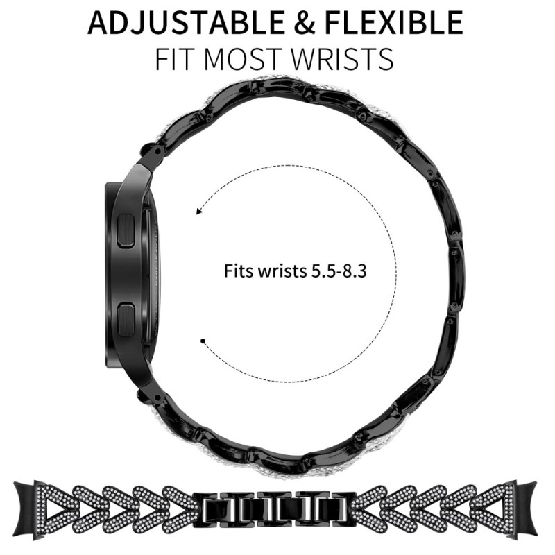 Upptäck vårt eleganta klockarmband för Samsung Galaxy Watch7. Tillverkat av högkvalitativ zinklegering och dekorerat med strass, kombinerar detta armband hållbarhet och stil.
