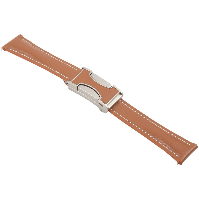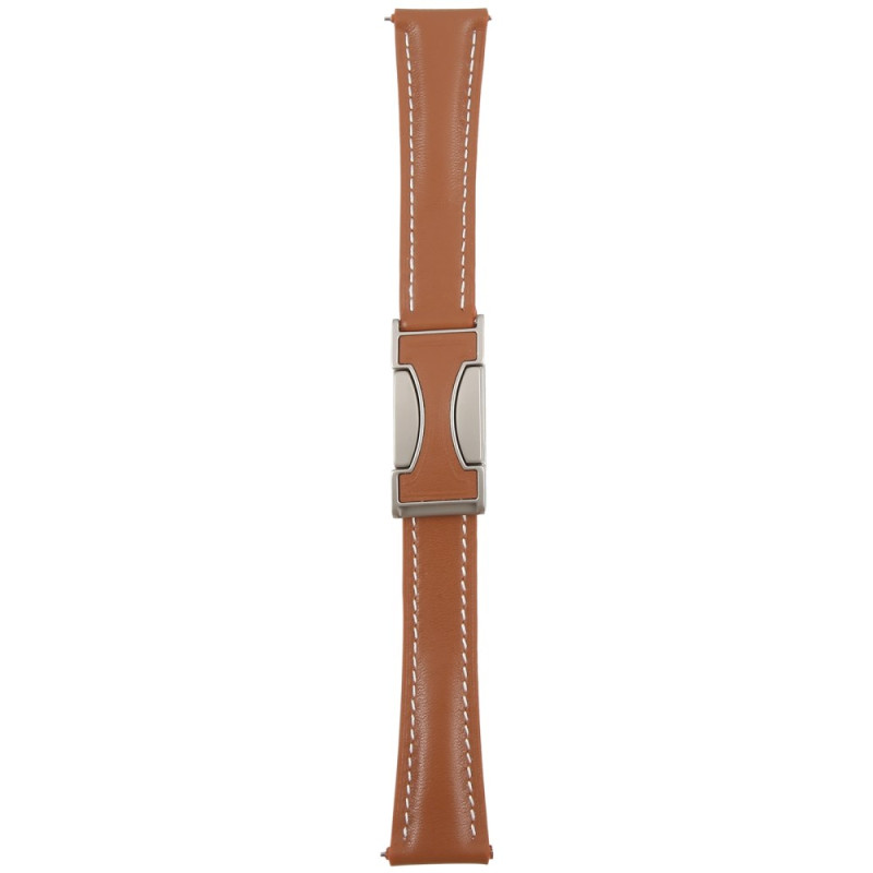 Upptäck vårt armband i äkta läder för uppkopplade klockor. Med sin eleganta platta struktur och innovativa magnetlås erbjuder det hållbarhet, vattenbeständighet och skydd mot svett.